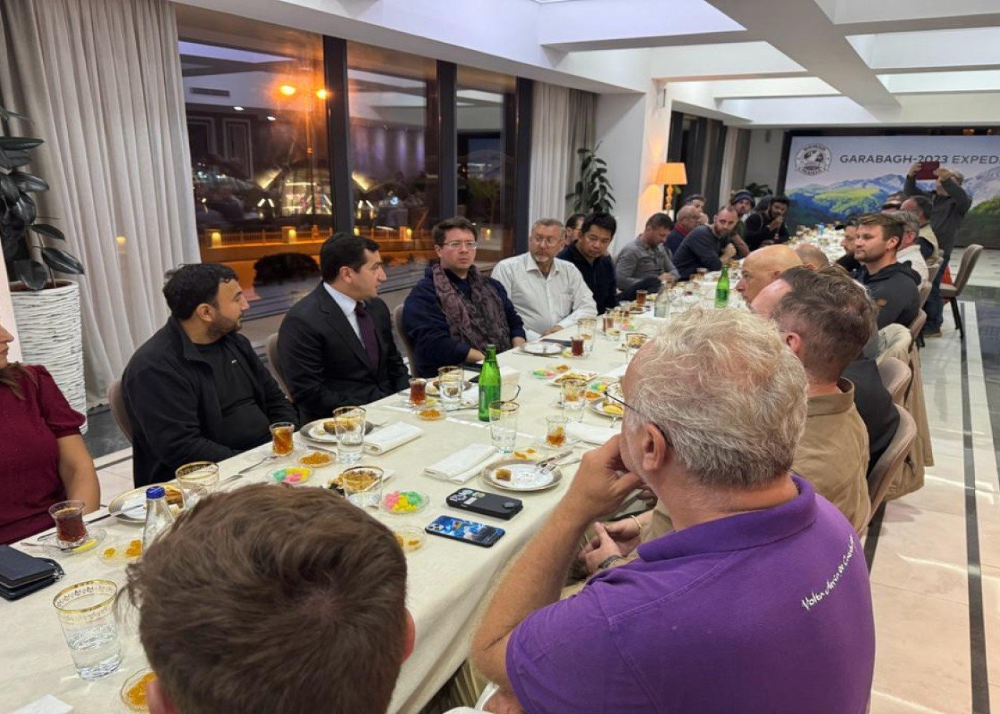 Azərbaycan Prezidentinin köməkçisi - Prezident Administrasiyasının Xarici siyasət məsələləri şöbəsinin müdiri Hikmət Hacıyev Qarabağdan səfərdən qayıdan beynəlxalq səyyahlarla görüşüb.