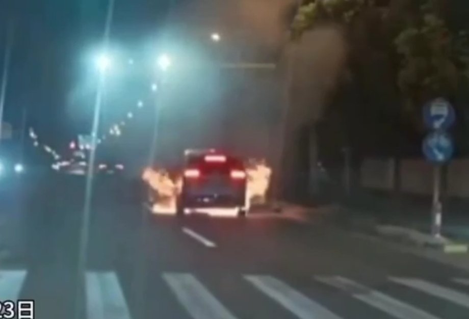Çinin Şanxay şəhərində “LiXiang” markalı elektromobil hərəkət edən zaman bir neçə saniyə ərzində alışaraq yanıb.